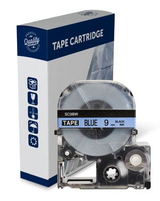 Black Text on 9mm wide Blue Label Tape for use in Epson (SC9BW) LABELWORKS300, LABELWORKS400 - 9 metres