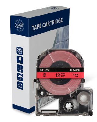 Black Text on 12mm wide Red Label Tape for use in Epson (SC12RW) LABELWORKS300, LABELWORKS400 - 9 metres