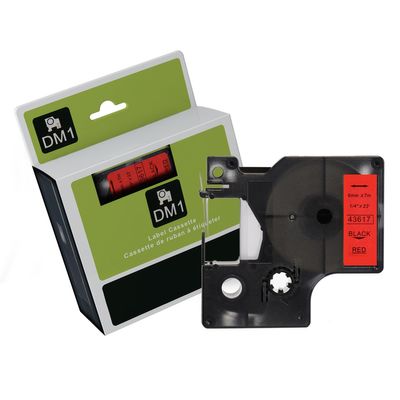 Black Text on Red Tape for use in Dymo (SD43617) LABELMANAGER210D, LABELMANAGERPnP, LABELMANAGER220P, LABELMANAGER260P, LABELMANAGER360D, LABELMANAGER420P, LABELMANAGER450D - 6mm wide x 7 metres long
