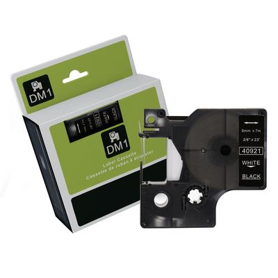 White Text on Black Tape for use in Dymo (SD40921) LABELMANAGER120P, LABELMANAGER210D, LABELMANAGERPnP, LABELMANAGER220P, LABELMANAGER260P, LABELMANAGER360D, LABELMANAGER420P, LABELMANAGER450D - 9mm wide x 7 metres long