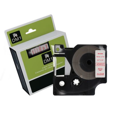 Red Text on Clear Tape for use in Dymo (SD45802) LABELMANAGER360D, LABELMANAGER420P, LABELMANAGER450D - 19mm wide x 7 metres long