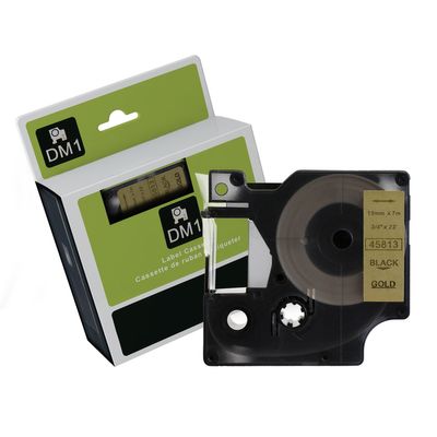 Black Text on Gold Tape for use in Dymo (SD45813) LABELMANAGER360D, LABELMANAGER420P, LABELMANAGER450D - 19mm wide x 7 metres long