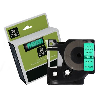 Black Text on Green Tape for use in Dymo (SD53719) LABELMANAGER450D - 24mm wide x 7 metres long