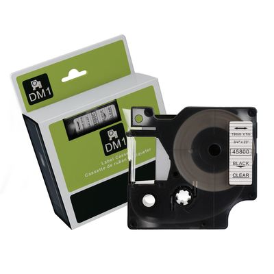 Black Text on Clear Tape for use in Dymo (SD45800) LABELMANAGER360D, LABELMANAGER420P, LABELMANAGER450D - 19mm wide x 7 metres long