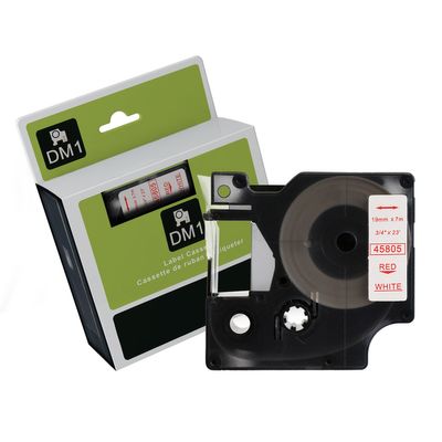 Red Text on White Tape for use in Dymo (SD45805) LABELMANAGER360D, LABELMANAGER420P, LABELMANAGER450D - 19mm wide x 7 metres long