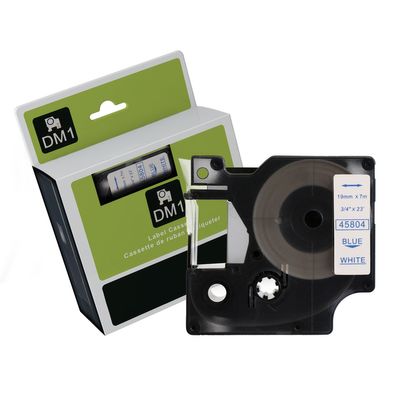Blue Text on White Tape for use in Dymo (SD45804) LABELMANAGER360D, LABELMANAGER420P, LABELMANAGER450D - 19mm wide x 7 metres long