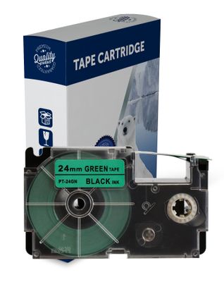 Black Text on 24mm wide Green Label Tape for use in Casio (XR24GN) CWL300, KL430,KL820, KL7000,KL7200, KL8100,KL8200, KLC500 - 24mm wide x 8 metres long