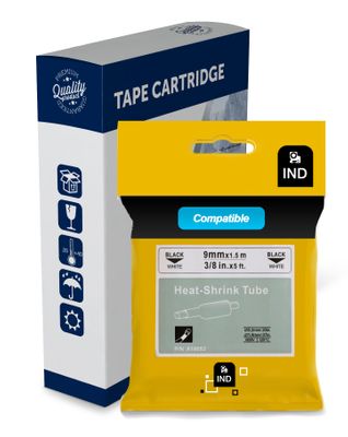 Black Text on White Industrial Heat-Shrink Tube 9mm for use in Dymo (SD18053) 3MPL150, Dymo Rhino 4200, 3MPL200, Dymo Rhino 5200, 3MPL300, Dymo Rhino 6000