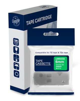 White Text on Green Laminated Tape for use in Brother (TZe715, TZ715) PT1000, PT1010, PT1090BK, PT1230PC, PT1280, PT1280DT, PT1290, PT1400, PT1650, PT1750, PT1830, PT1830SP, PT1880, PT1950, PT2030, PT2100, PT2300, PT2420PC, PT2430PC, PT2700, PT2730, PT360