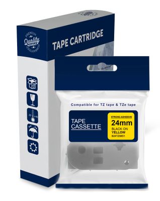 Black Text on Strong Adhesive Yellow Laminated Tape for use in Brother (TZeS651, TZS651) PT1400, PT1650, PT2300, PT2420PC, PT2430PC, PT2700, PT2730, PT3600, PT7600, PT9500PC, PT9600, PT9700PC, PT9800PCN, PTD600, PTD800W, PTE550WVP, PTP700, PTP750W, PTP900